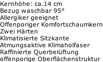 Kindermatratzen weiter Kernhöhe: ca.14 cm Bezug waschbar 95° Allergiker geeignet Offenporiger Komfortschaumkern Zwei Härten Klimatisierte Sitzkante Atmungsaktive Klimaholfaser Raffinierte Querbelüftung offenporige Oberflächenstruktur mehr Infos
